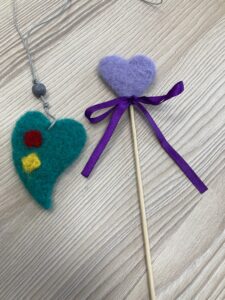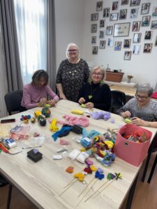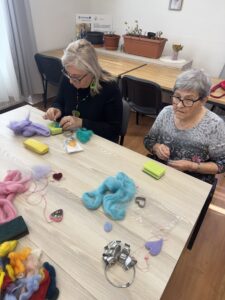Na arteterapii si naše členky spolu s lektorkou Markou vyskúšali zaujímavú techniku suchého plstenia. Vznikli krásne a originálne výrobky – zápichy do kvetináčov, náhrdelníky aj milé srdiečka. 🧶💛